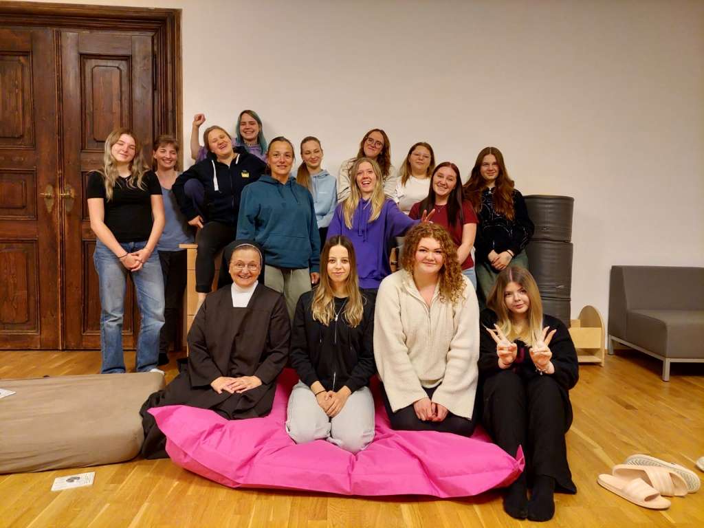 Wir, die Schülerinnen der 1 SOB dürfen eine wertvolle gemeinsame Zeit im Jugendzentrum Aufbruch mit Diözesanpriester Mag. Heinz Purrer, mit unserer Klassenvorständin Verena Brandner, unserer Religionslehrerin Sr. Maria Angela und Sr. Klara erleben, um